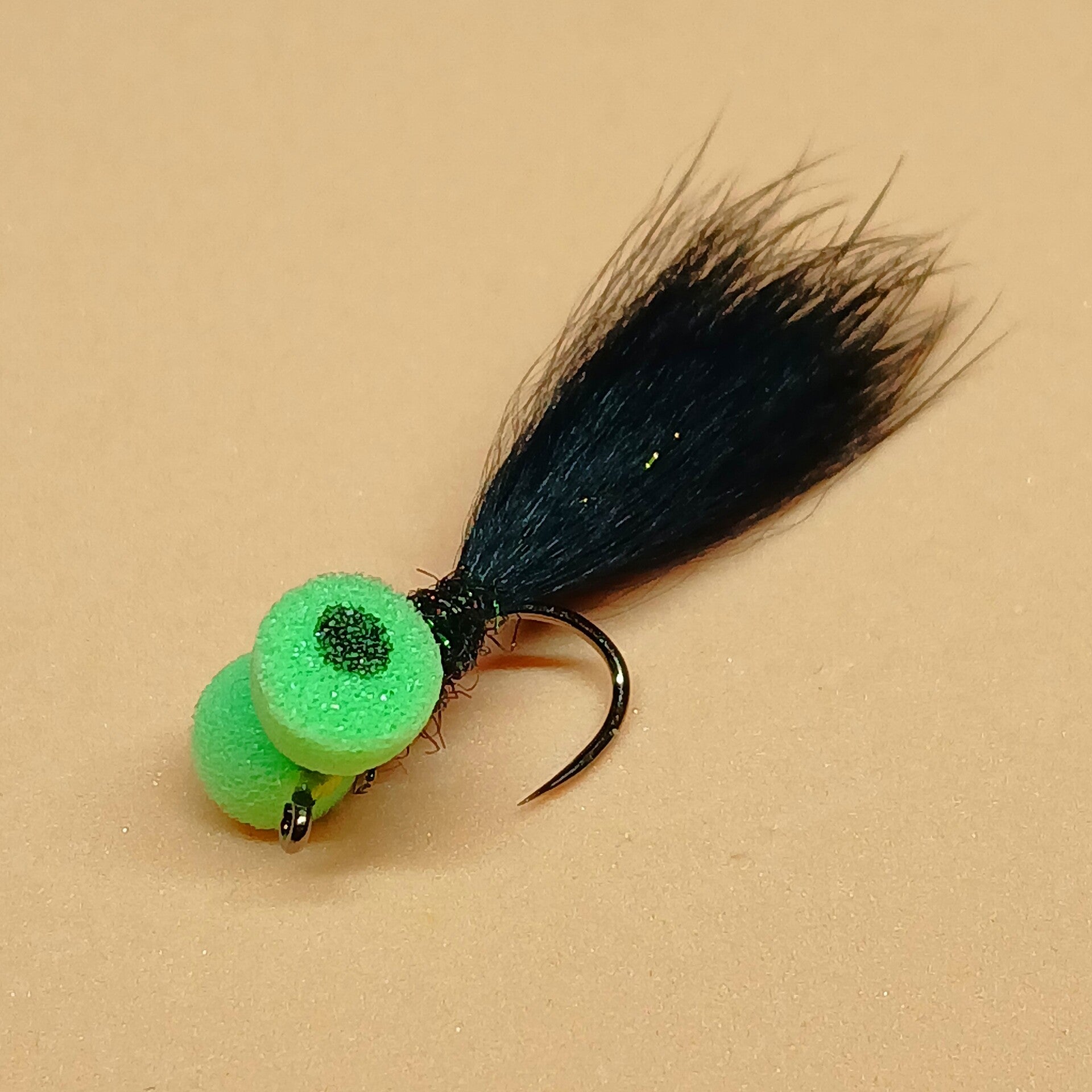 Petit streamer incitatif, équipé de deux yeux en mousse qui le font constamment remonter vers la surface. Monté avec une soie très plongeante sur un bas de ligne ultra court, il trouve son utilité pour pêcher lentement lorsque les poissons sont au ralenti et calés au fond. (en plein hiver principalement, mais aussi en plein été lorsque les poissons recherchent la fraicheur en profondeur...).